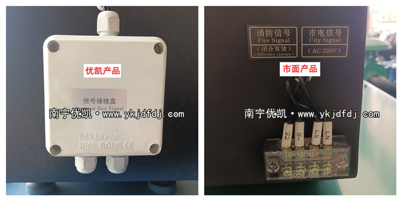優(yōu)凱動力生產(chǎn)的柴油發(fā)電機組配置自啟動控制系統(tǒng),液晶顯示屏側(cè)邊的市電信號優(yōu)凱動力做了升級優(yōu)化,加了保護罩,防雨防曬,進一步保護接線頭,增加安全性,防止漏電。